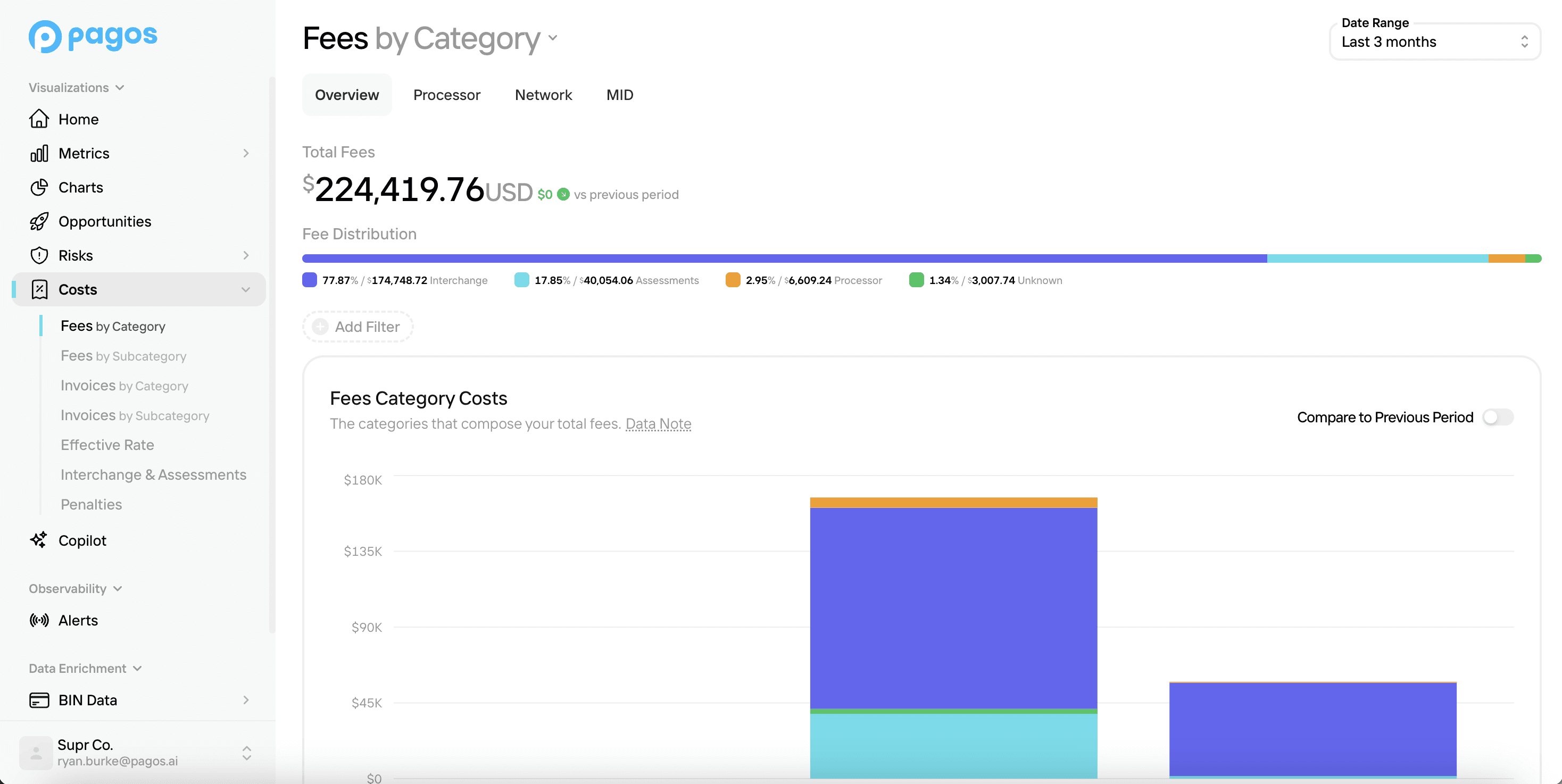 Pagos Costs give unmatched detail into the cost of acceptance across all your processors.